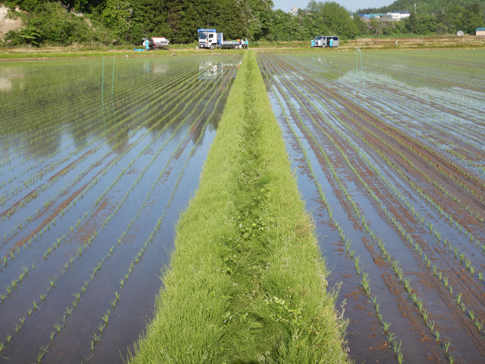 1ha圃場の田植え作業も2時間で無事終了した。今後は、ドローンと衛星を用いたセンシングによる生育状況の比較検証も行う予定である。今年こそは何ごともなく、収穫作業まで終えられることを期待したい。(みんなの農業広場事務局)