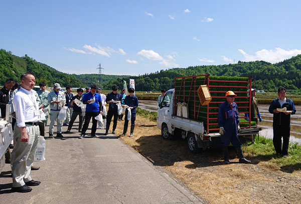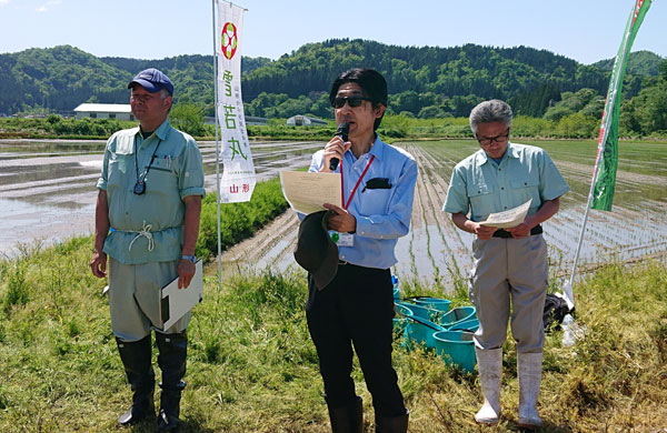 ▼ペースト二段施肥田植え作業実演会を開催(山形県戸沢村) ※令和6年度実証