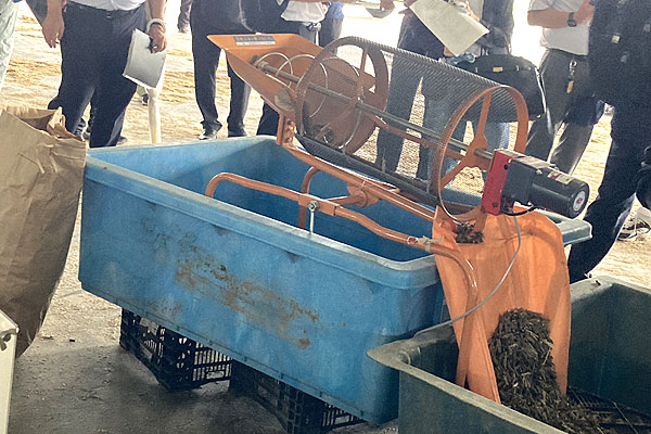実証農家であるビーナスファーム合同会社の若山氏からは、「これまではハウスの中でゴマを立てかけて乾燥させており、かなりの面積が必要。規模拡大をしようにも、1年に1カ月しか使わないハウスを建てるのは非効率で、乾燥能力が低いことが規模拡大の障害となっていた。この乾燥機が使用できれば問題解決となり、面積の大幅な拡大も可能」と話があった。