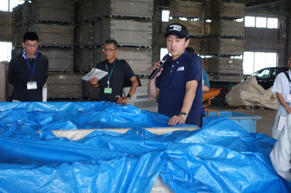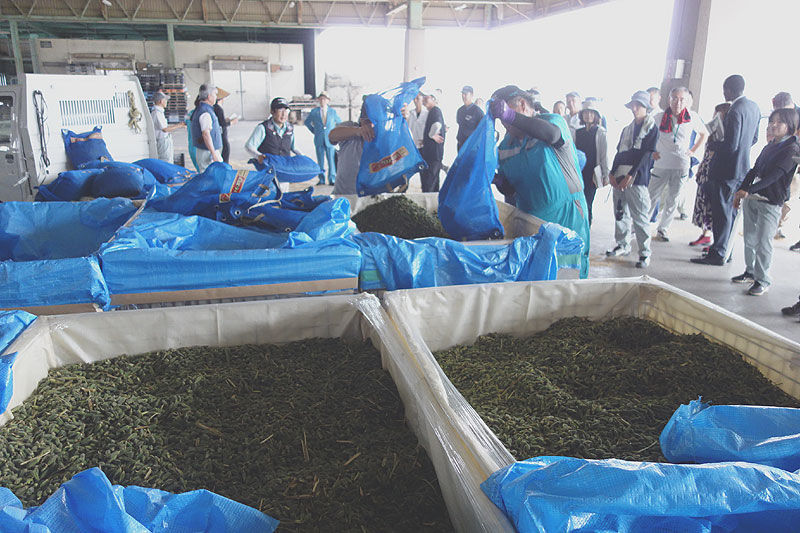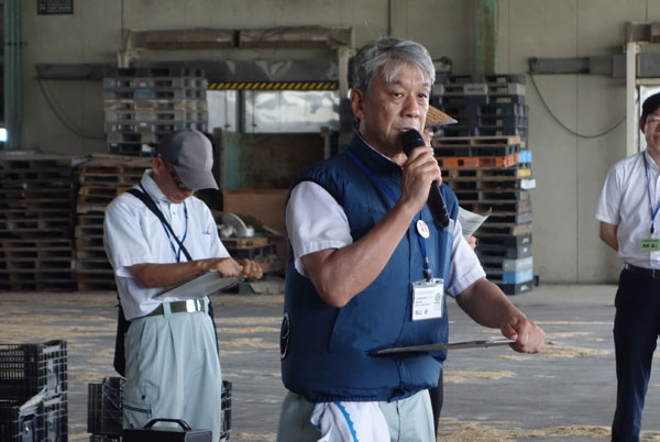 後半は会場を屋内(野菜出荷所)に移し、乾燥調製の実演が行われた。