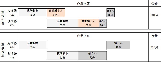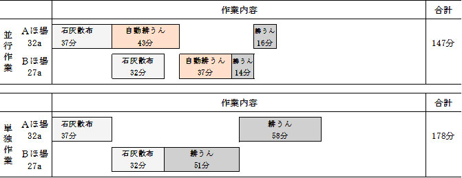 表2 石灰散布における同並行作業と慣行作業の時間比較