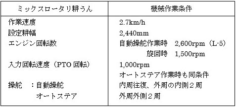 (5)供試機 :ロボットトラクタ(MR1000A)、ミックスロータリ(G25ADQ)、汎用いも類収穫機(TPH509)