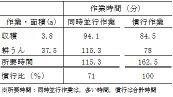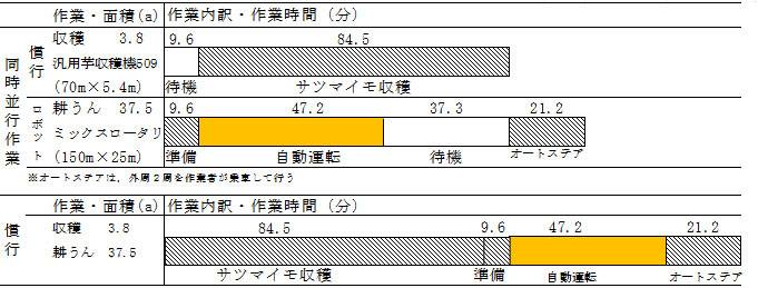 表5 サツマイモ収穫とミックスロータリ残渣処理並行作業と慣行作業の時間比較