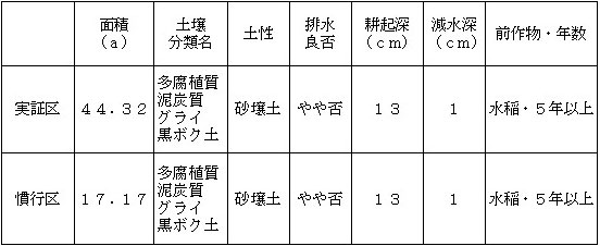 実証区:ほ場の中心部が若干高く、周囲はやや低く水たまりが生じる箇所があった。