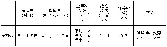 ※2:播種深度は30粒を調査し、平均値を記載
