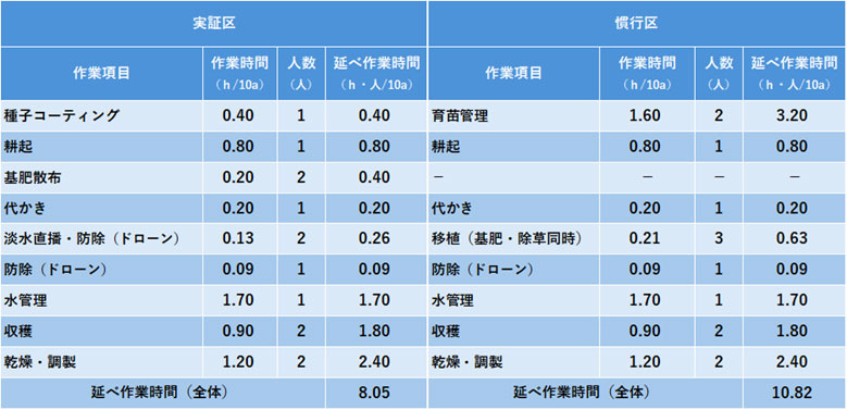 特に、育苗管理の削減と、播種作業にかかる時間が移植作業より短いことが影響した。