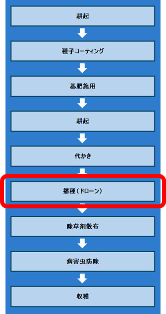 そこで、ドローン直播栽培の省力効果、水稲の生育と収量に対する影響を調査することとした。