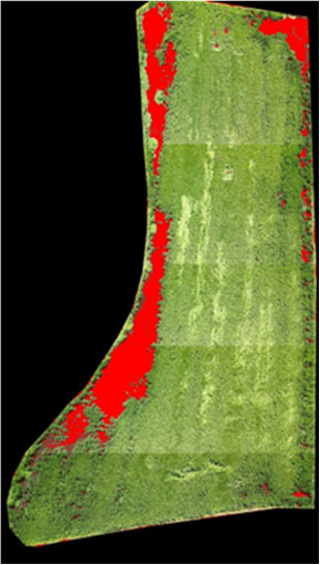 ImageJによる空撮画像の解析から、出芽不良面積は188k㎡だった。